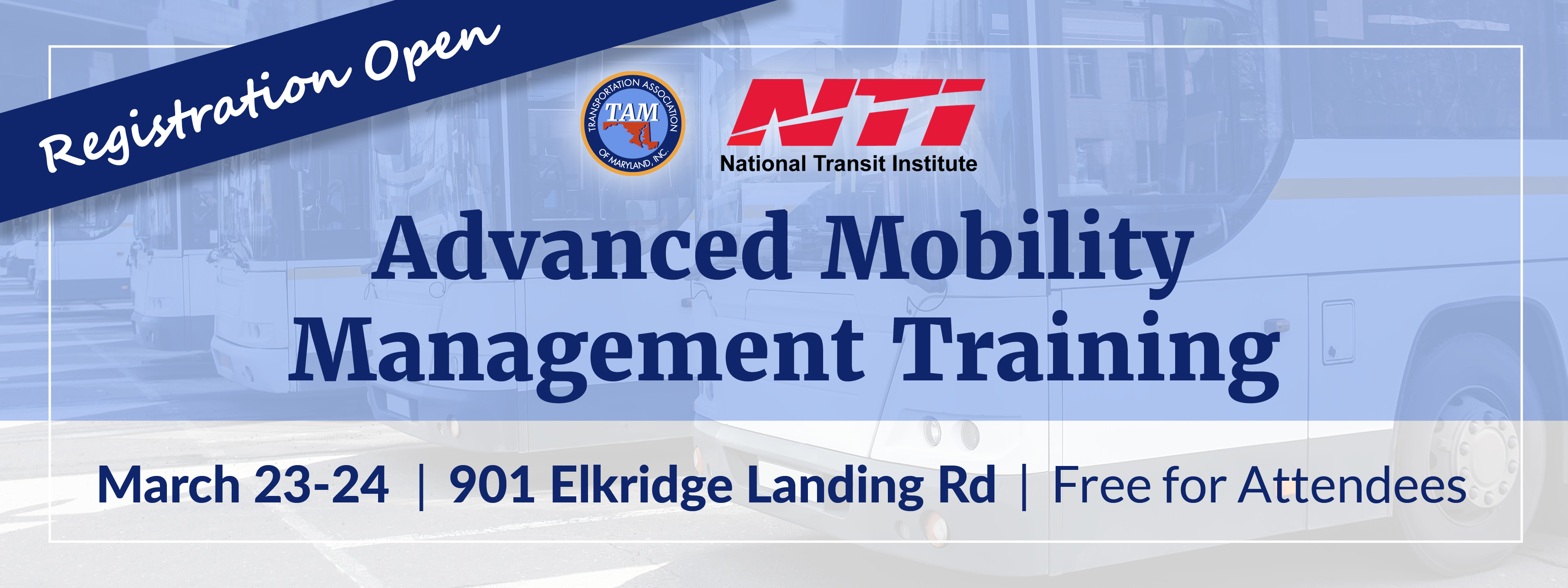 When: Monday, March 23, 2026 - Tuesday, March 24, 2026 Where: 901 Elkridge Landing Rd, Linthicum, MD How to register: https://go.rutgers.edu/ntiamm0326 Who should attend: This course is designed for mobility management professionals who are ready to move beyond introductory concepts and elevate mobility management within their organizations and communities. Attendees should be professionals with 1–5 years of experience implementing mobility management strategies, including: